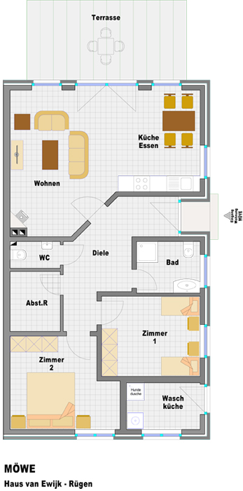 Die obligatorische Nebenkostenpauschale beträgt 135,00 €, Bettwäsche und Handtücher können für je 17,00 € p.P. gebucht werden, die Preise gelten für 4 Personen, Übernachtungskosten für jede weitere Person 25,00 € zusätzlich, Kurtaxe ist vor Ort (2,-- € / 1,50 € je nach Saison) zu entrichten. Bei Abschluss des Mietvertrages sind 20% der Gesamtsumme und der Restbetrag zzgl. 150,00 € Kaution 21 Tage vor Anreise zu zahlen. Die Kaution wird Ihnen nach Abreise bei Mängelfreiheit der Wohnung unverzüglich und unverzinst zurückgezahlt. Die Wohnungen "Möwe" und "Schwalbe" sind für je einen Hund zugelassen (einmalige Pauschale 8,00 €)